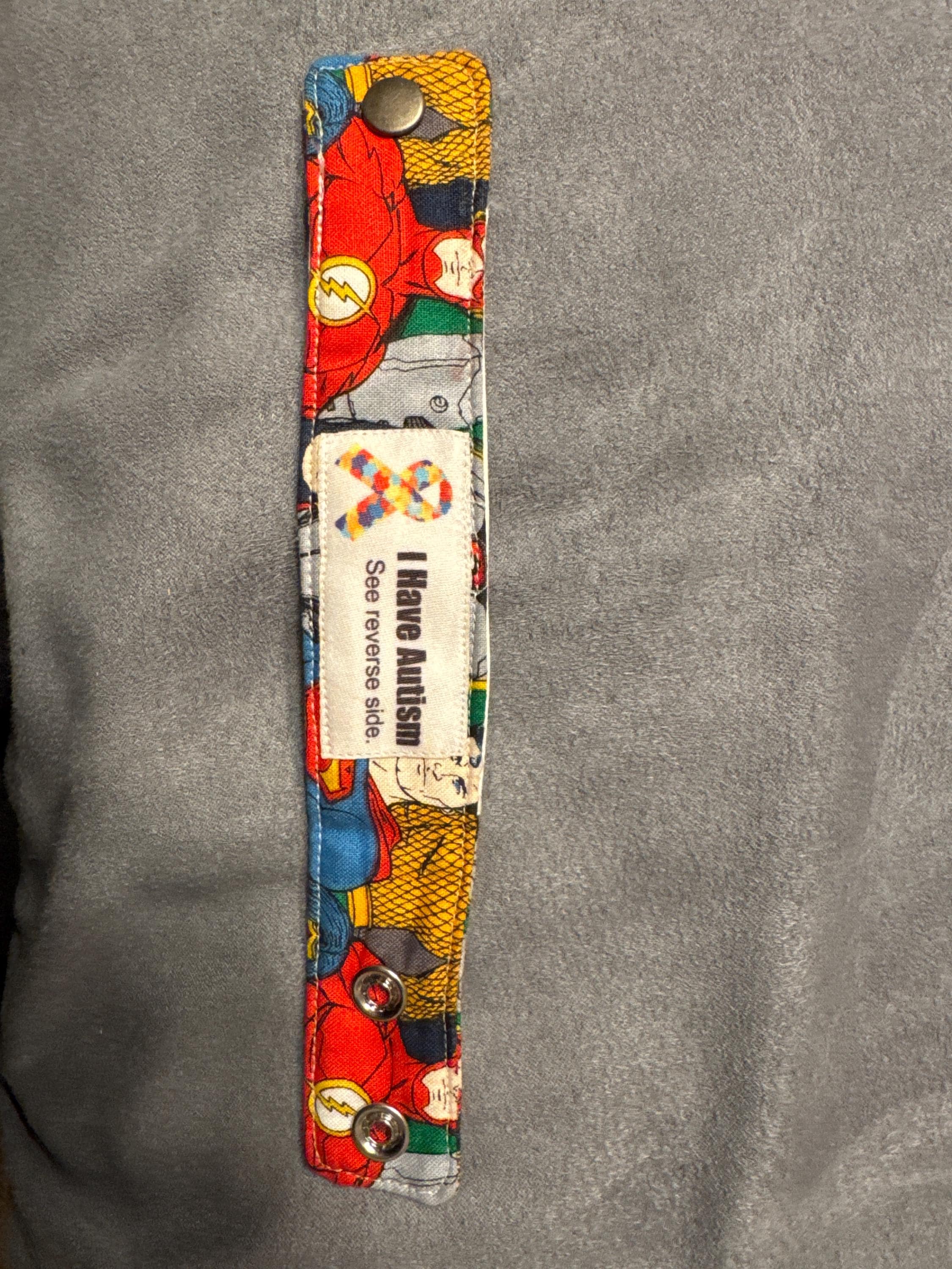 The cuffs are made from soft 100% cotton fabric on the outside, 100% organic cotton on the inside, and have 100% all-natural cotton batting sandwiched between. This cuff has the 'I Have Autism' label on the outside and an info label (written or custom printed option available when checking out) on the inside for personal information. If choosing the hand-written option, I have learned that the Pentel Gel Roller Pen for FABRIC works well on these labels! Do NOT use a regular Sharpie marker as it will bleed on fabric! If you prefer for the information to be written on your cuff before it's received, just let me know the info you want included at checkout for the following: